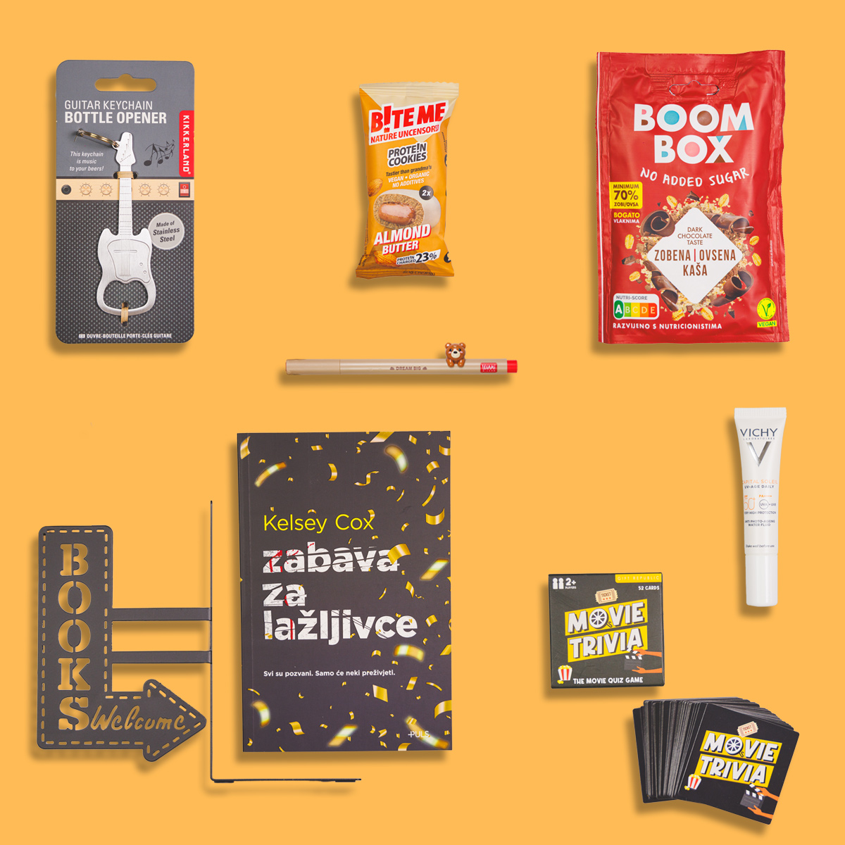 Artikle za Book box pomno biraju Hoću knjigu djelatnici, a koji će točno artikli biti odabrani ovisi o samoj knjizi, njenoj naslovnici i naslovu te tematici.