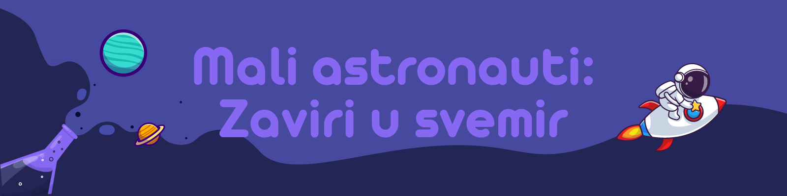 Radionica za djecu u kojoj mali istraživači upoznaju čudesni svemir kroz igru i kreativnost. Kroz kratko i zanimljivo druženje naučit će osnovne zanimljivosti o planetima, Mjesecu i svemiru, a zatim će od glinamola izrađivati vlastite modele - planete, Mjesec i druga svemirska tijela.