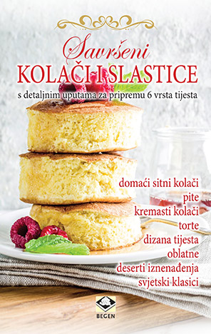 62 recepta za sitne kolače, kremaste kolače i oblatne, dizana tijesta, pite i biskvite, svjetski klasici, te deserti iznenađenja kao što je Švicarska Engadine torta ili kolač Battenberg. Detaljne upute za pripremu 6 vrsta tijesta: prhko, dizano, biskvitno, vučeno, lijevano, kuhano, lisnato, dizano lisnato.